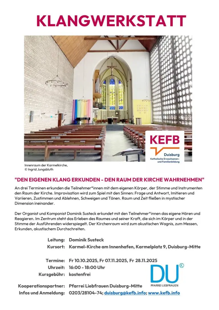 Kontakt: Judith Haller, E-Mail: foerderverein@karmel-duisburg