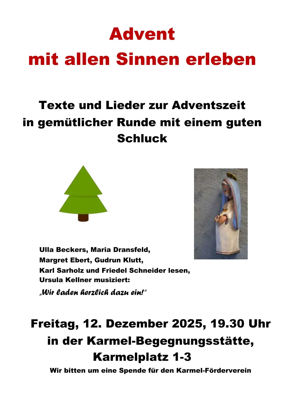 Für die Karmel-Kommunität und Bitte um Anmeldung: Renate Reichert, Tel 26415