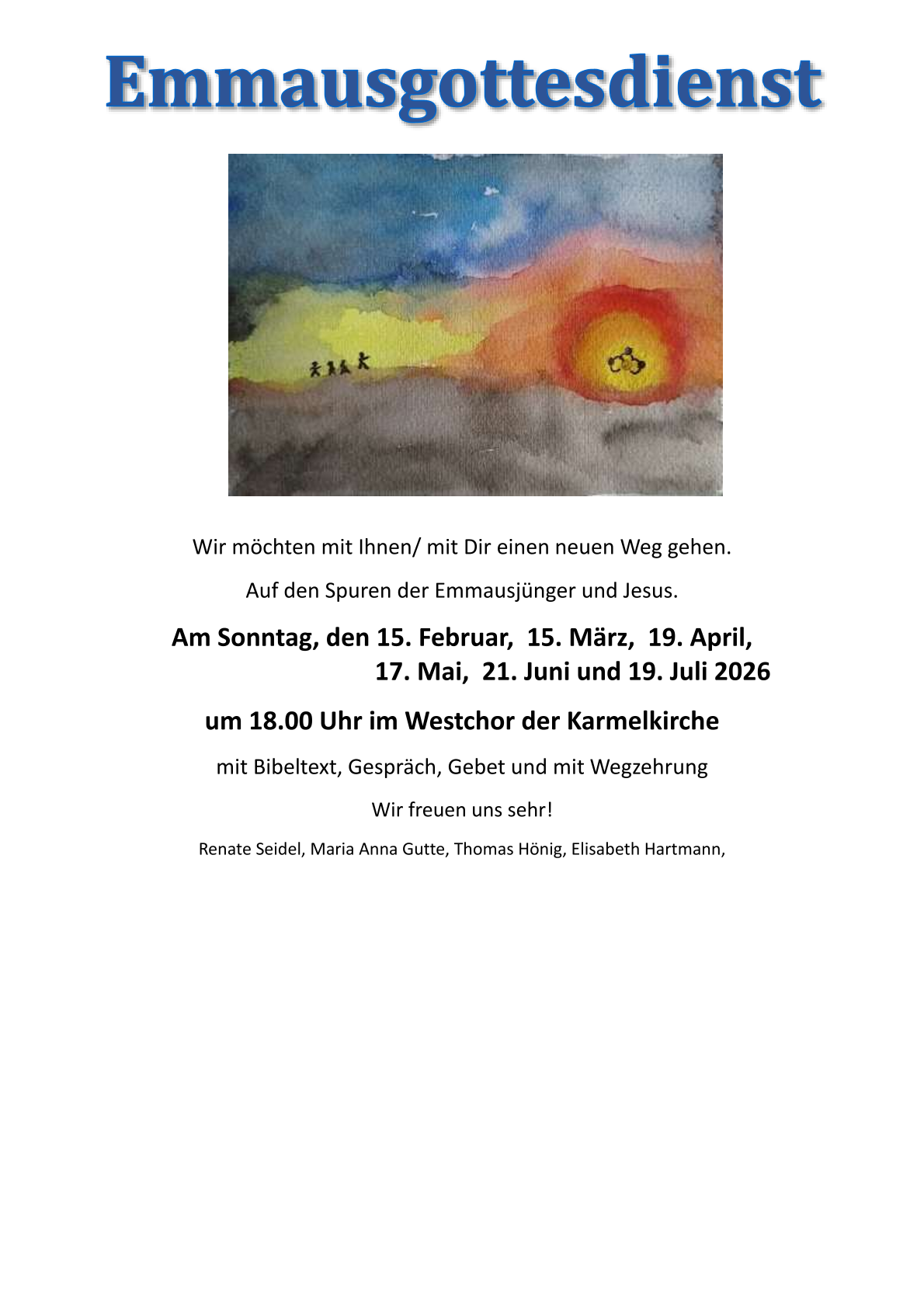 Alle Gruppen/Kreise des Karmel erhalten noch eine zeitnahe Information per E-Mail.